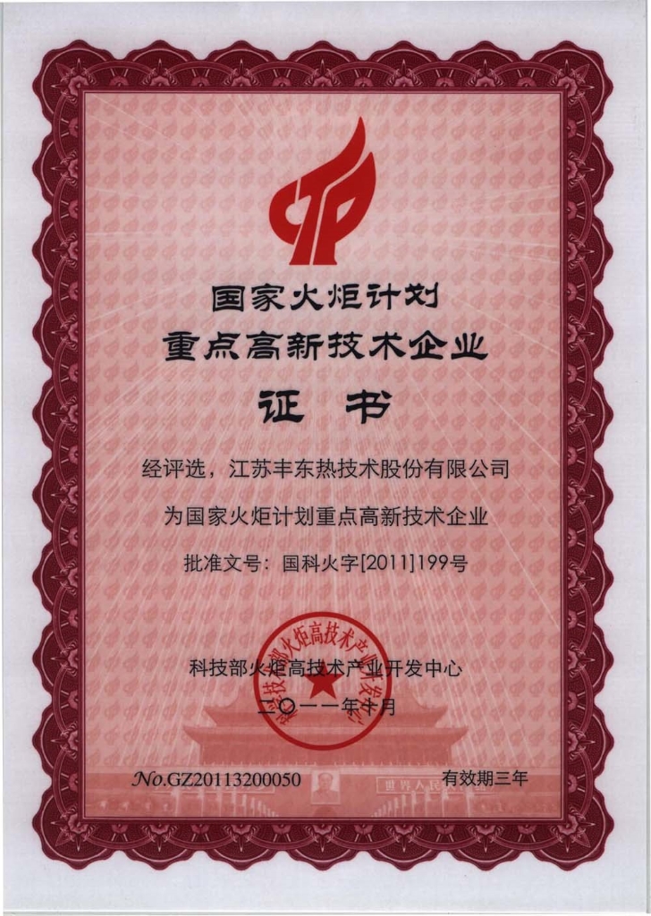 公司被科技部火炬高技術(shù)產(chǎn)業(yè)開發(fā)中心評選為“國家火炬計劃重點高新技術(shù)企業(yè)”