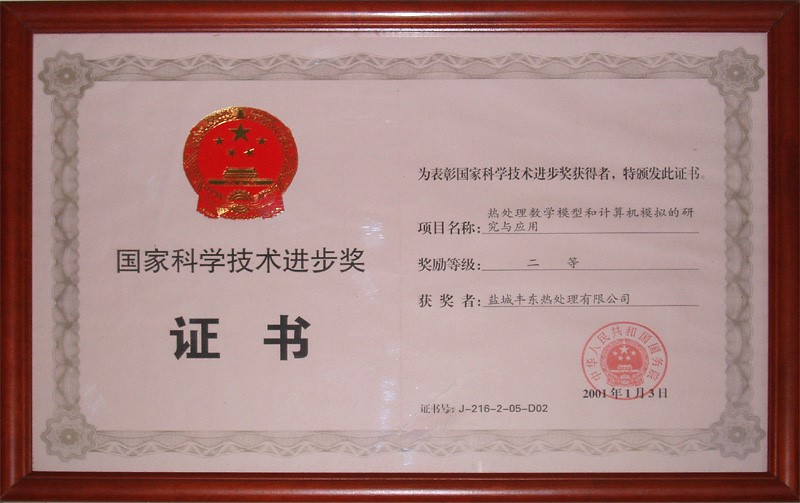 獲得熱處理行業(yè)最高獎項:國務(wù)院頒發(fā)的國家科學(xué)技術(shù)進步二等獎